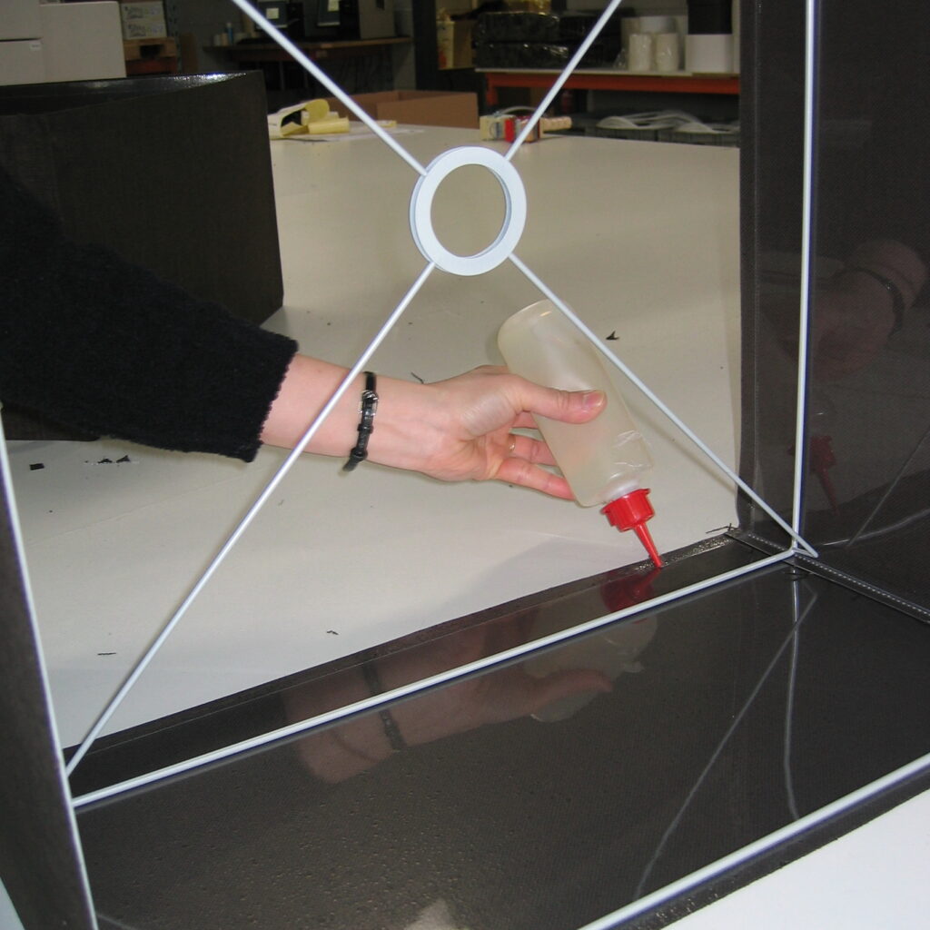 Extra-strong polyurethane glue for gluing metal rings into the lampshade. Close the glue tin properly and use empty bottles and replaceable nozzles to apply glue accurate and efficient.