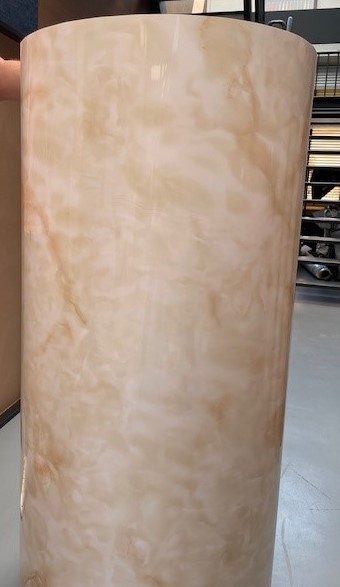 Strong foil with the Alabaster marble pattern. Luxurious marble-look foil with the glossy finish of polished stone and a warm, sophisticated touch, - it’s the perfect choice for a high-end hotel ambiance.